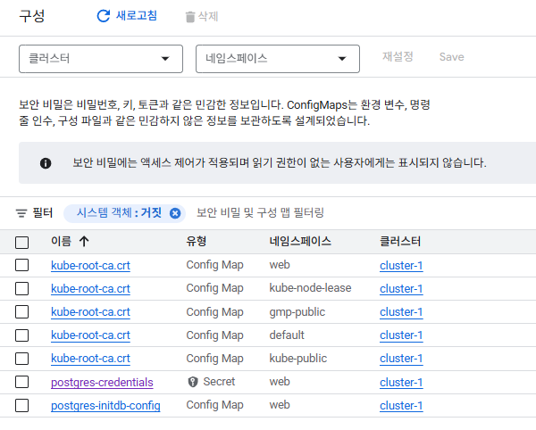 - google cloud ์ฝ์ ํํ์ด์ง์์๋ ํฌ๊ฒ ์ํฌ๋ก๋์ ๋ณด์ ๋น๋ฐ ๋ฐ ConfigMap, ๊ฒ์ดํธ์จ์ด, ์๋น์ค, ์ธ๊ทธ๋ ์ค ํ์ด์ง์์ ํ์ธ์ด ๊ฐ๋ฅํ๋ค.