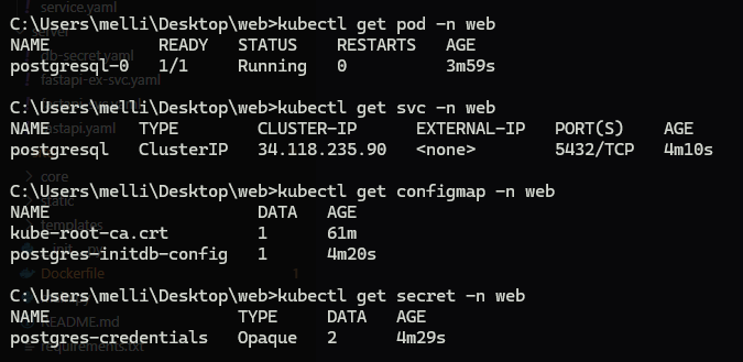 ์ด๋ฒ์ ์ ๋ฌด๊ณผ์ ์์ ์ผ๋ ํด๋ค์ ์ ๋ฆฌํด๋ณด๋ฉด์ k8s ์น ๋ฐฐํฌ๋ฅผ ์๋ ์ ํ๋ ๊ธฐ์ต์ ๋์ด๋ ค ๋ค์ ๊ณต๋ถํด๋ณด๋ฉด์ ํฌ์คํ ํ๊ธฐ๋ก ํ๋ค. ์ง๋ ํฌ์คํ ์์๋ kubectl, gcloud๋ฅผ ์ค์นํ๊ณ fastapi ์ธก ์ํฌ๋ก๋ ์ปจํ ์ด๋๋ฅผ gke ์์ ์ฌ๋ ค๋ณด์๋ค. ์ด๋ฒ ํฌ์คํ ์์๋ DB ์ค์ ์ ํ์ํ ํ์ผ๋ค์ ๋ง๋ค์ด๋ณด๋ฉด์ PV, PVC, configmap ๋ฑ ๋ด๊ฐ ํท๊ฐ๋ ธ๋ ๊ฒ๋ค์ ์ ๋ฆฌํด๋ณด๋ ์๊ฐ์ ๊ฐ์ง๋ค.