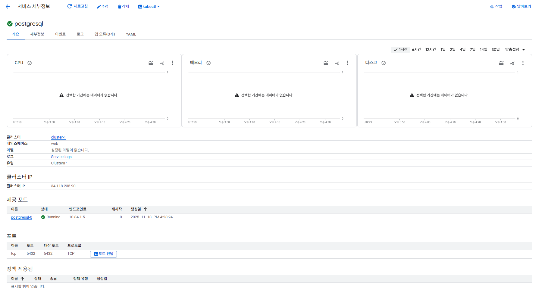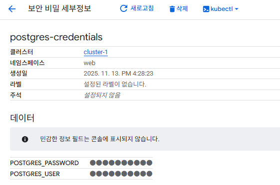 - ์ฒซ ๋ฒ์งธ ๋ฌธ์ ํด๊ฒฐ์ ์ํด rolename, password๋ก ์ง์ ํ ๋ด์ฉ๋ค์ secret ํํ๋ก ์ฎ๊ฒผ๋ค. ๊ธฐ๋ณธ ์ ์ ์ธ POSTGRES_USER, POSTGRES_PASSWORD ํ๊ฒฝ๋ณ์๋ก ๋ง๋ค๋ฉด ์๋ก ์ ์ ๋ฅผ ๋ง๋ค ํ์๊ฐ ์๋ค.