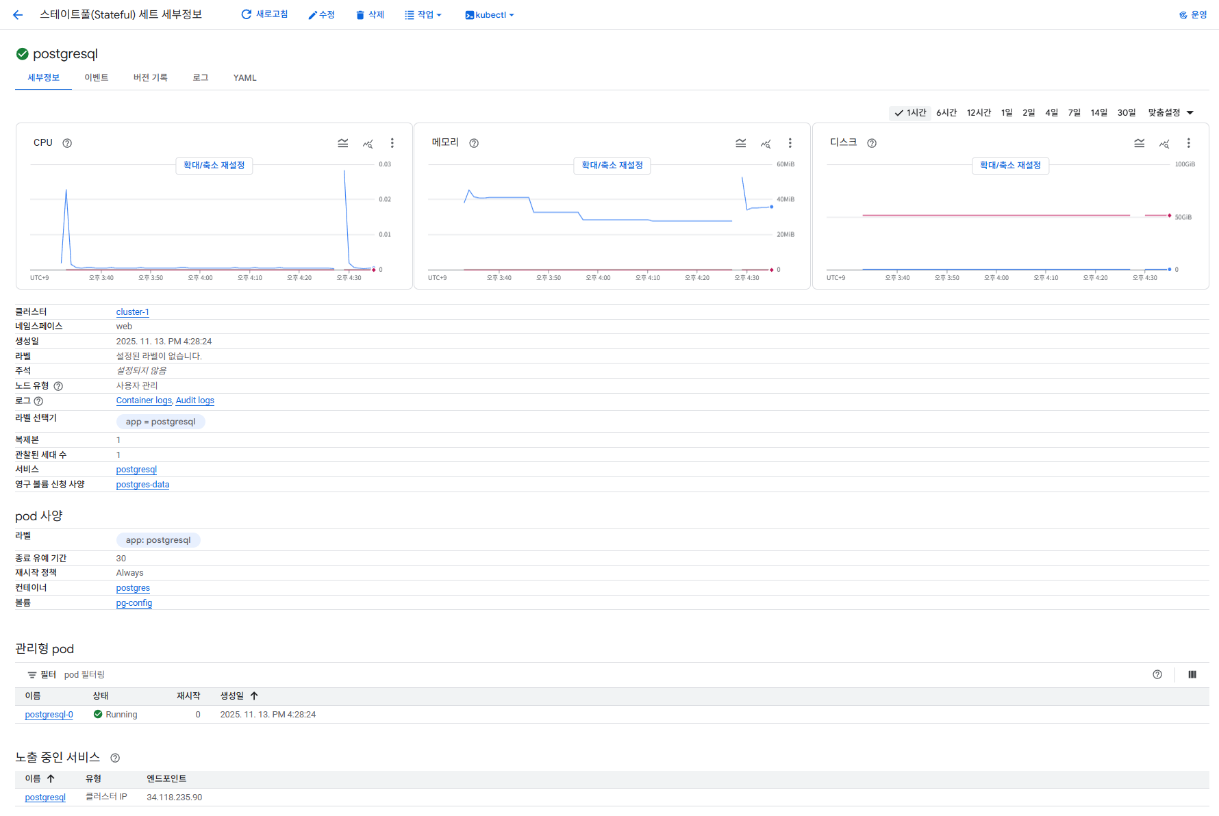 - Database๋ Stateful Set ์ ์ฌ์ฉํ์ฌ ์ฟ ๋ฒ๋คํฐ์ค์ ์ฌ๋ฆฐ๋ค.