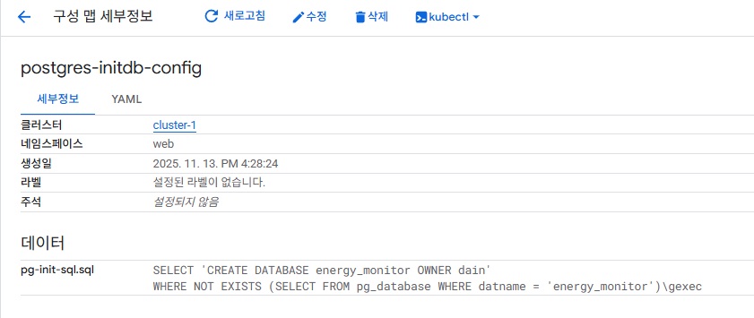 - ์ฒซ ๋ฒ์งธ ํฌ์คํธ์์ postgresql์ custom docker image๋ฅผ ๋ง๋ค์๋ ์ด์ ์ธ init.sql ์ ๋์์ ์ ์ฅํด๋๊ธฐ ์ํด์ configMap์ ์ฌ์ฉํ ๊ฒ์ด๋ค.